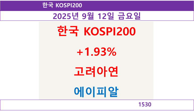 한국 KOSPI200 상승 1.93%