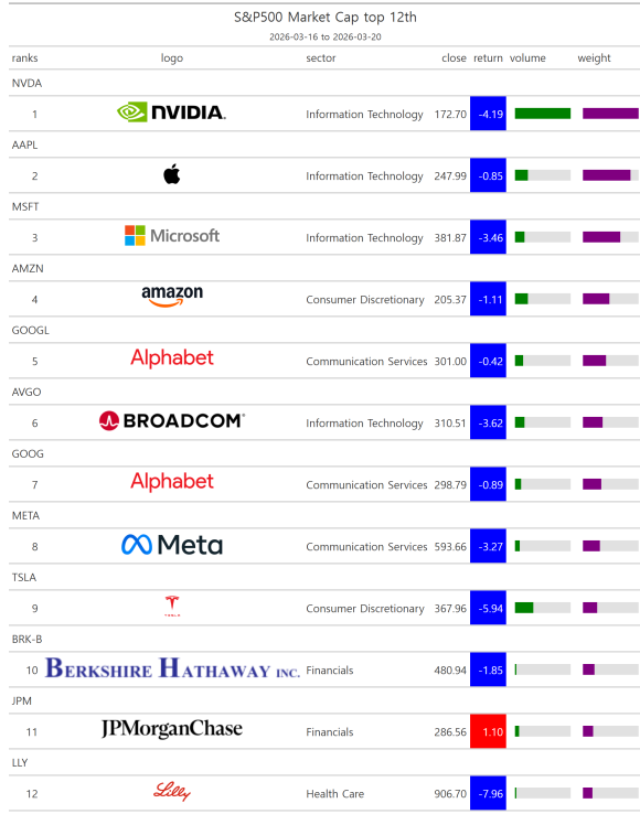 | [주간순위]S&P500 시가총액 거래량 등락률 TOP10 2026년 3월 4주 (0) | 2026.03.28 |