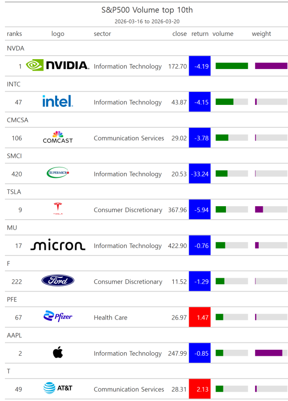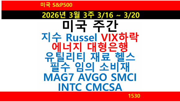 | [주간레이스]2026년 3월 3주 S&P500(시가총액, 거래량, 등락률 상(하)위 (0) | 2026.03.21 |