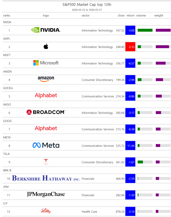 | [주간레이스]2026년 3월 4주 S&P500(시가총액, 거래량, 등락률 상(하)위 (0) | 2026.03.28 |