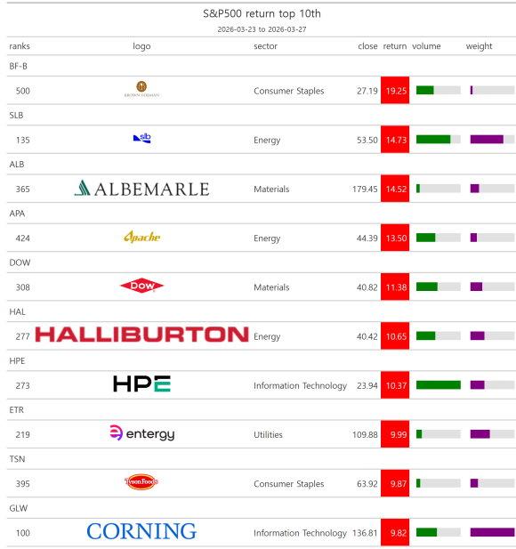 주간 S&P500 등락률상위