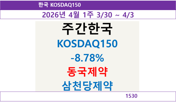 | 한국 KRX300 주간하락 -1.38% (0) | 2026.04.05 |