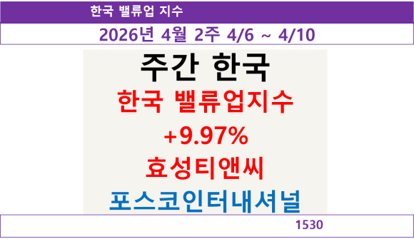 | 한국 KOSDAQ150 주간상승 +2.67% (0) | 2026.04.12 |